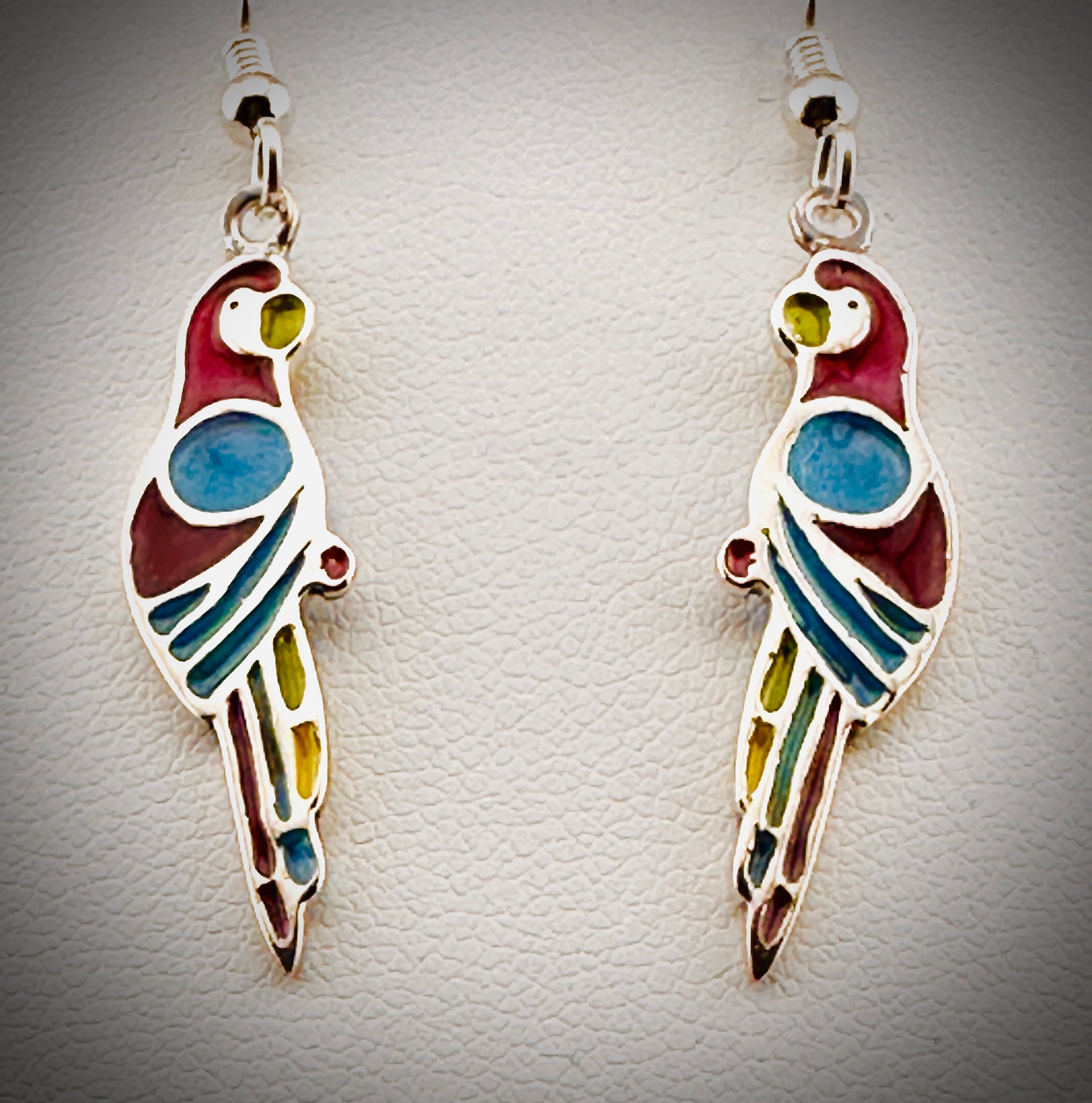 - Fine silver Plique a Jour Parrots with sterling silver ear wires.